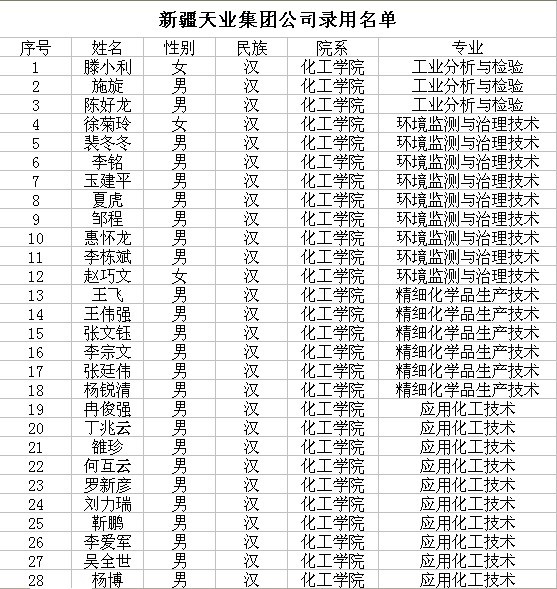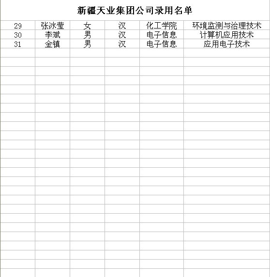 新疆天业集团录取员工名单