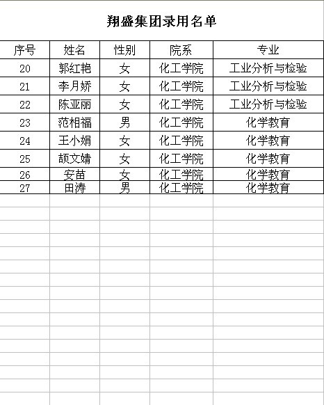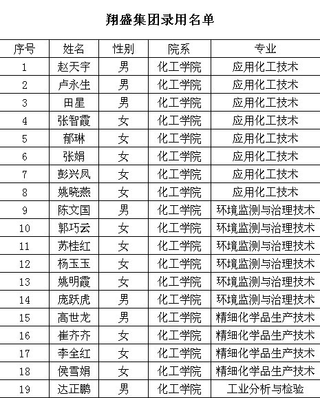 翔盛集团录取员工名单