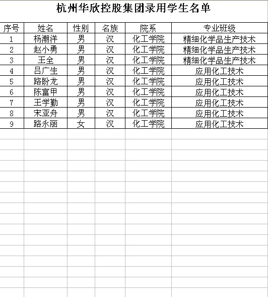 华欣集团录取员工名单