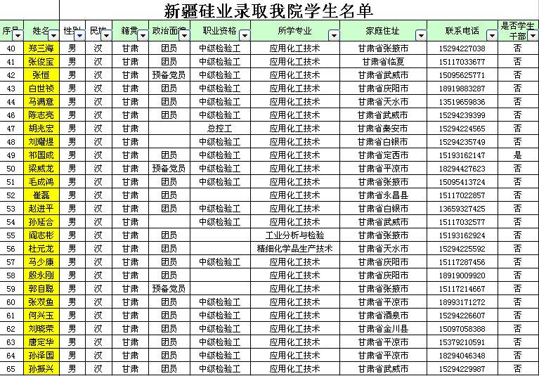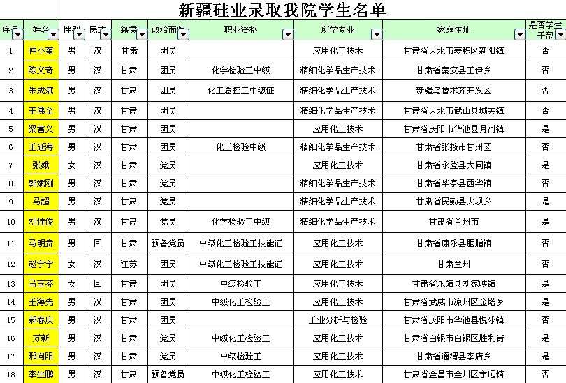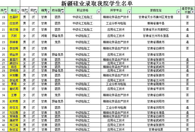 特变电工新疆硅业录用公司员工名单