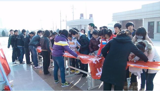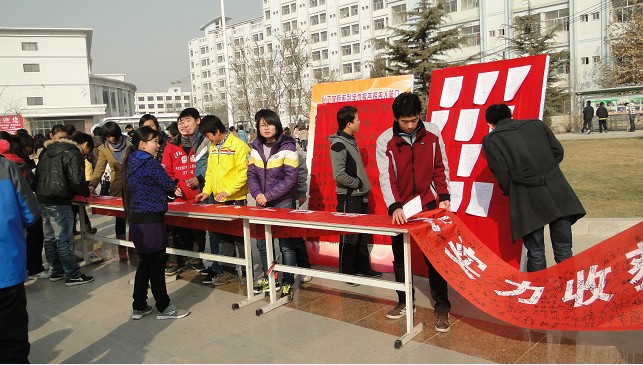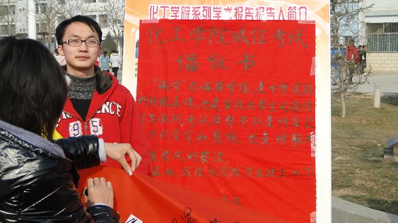 (三)12月22日,开展了诚信考试签名活动,员工们在横幅和各班级印制的签名书上纷纷签了名,表示要诚信考试,杜绝作弊。