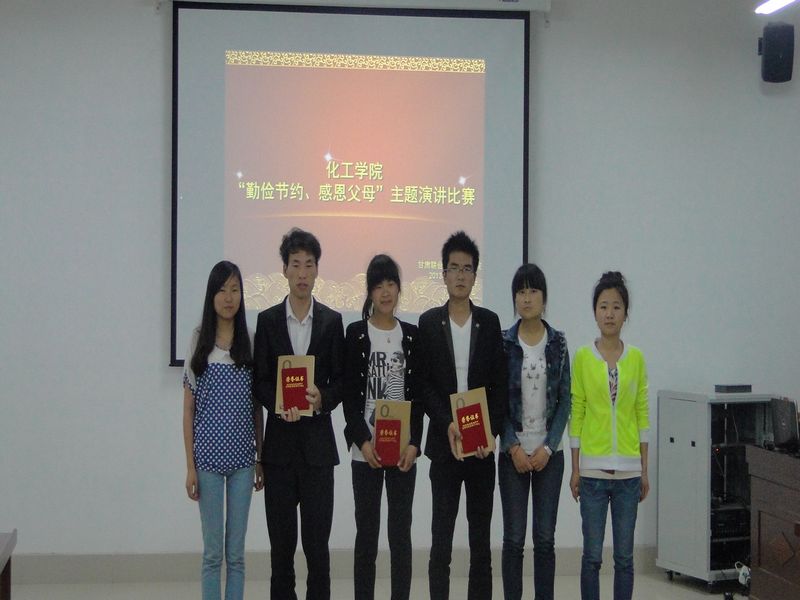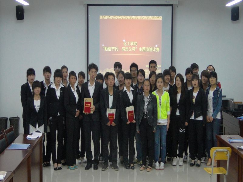 2013年4月25日,公司在公司会议室举行了以“勤俭节约,感恩父母”为主题的演讲比赛。公司辅导员李睿老师、部分员工代表和各班级派出的30名选手参加了本次比赛,比赛由12级应化三班高云同学和12级应化四班尤肖星同学主持。