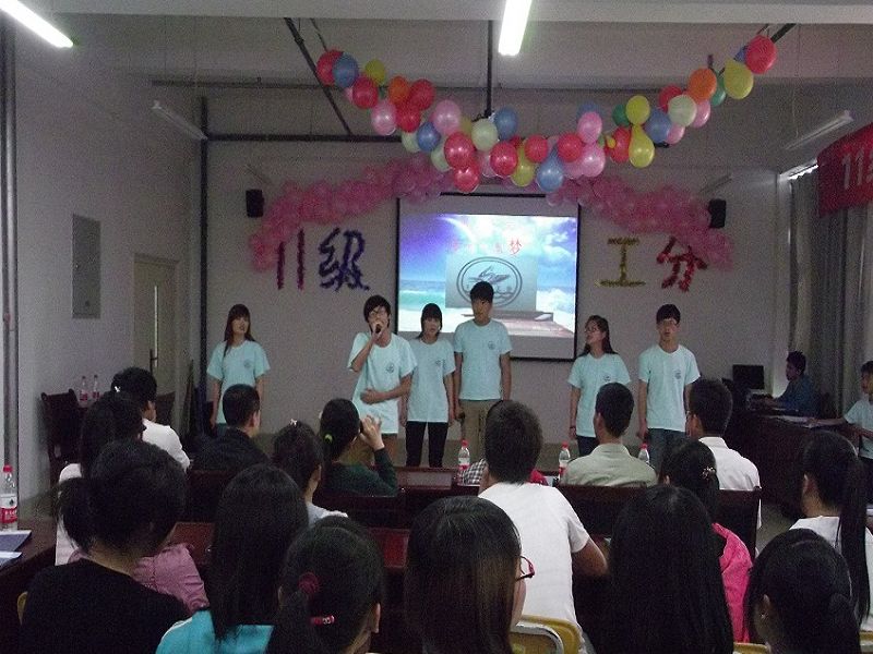 05月14日中午02:30在综合楼1009室,伴随着欢腾的音乐,11级工分班“中国梦我的大学梦”主题文艺活动正式拉开了序幕,出席本次活动的人员有开云副经理、本班班主任展老师,开云辅导员李老师,以及员工会干部和本班全体同学。