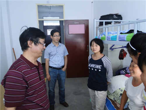 公司领导于9月5日下午走进2014级新生宿舍,董事长助理、开云经理王克太、党委副书记副经理张兴辉、副经理展惠英、辅导员李睿及2014级新生各班班主任走访寝室,与大一新生和家长进行交流。