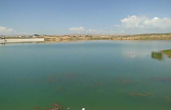 上午11点左右,我们来到了兰州新区尖山庙水库。尖山庙水库是兰州新区的三大水库之一,引大入秦工程的水源通过管网的输送后到达这里,经兰州新区给水厂处理后,供工业和生活用。队员们了解了尖山庙水库的库容、流量、管网配套和运行等情况,现场采集了水样。