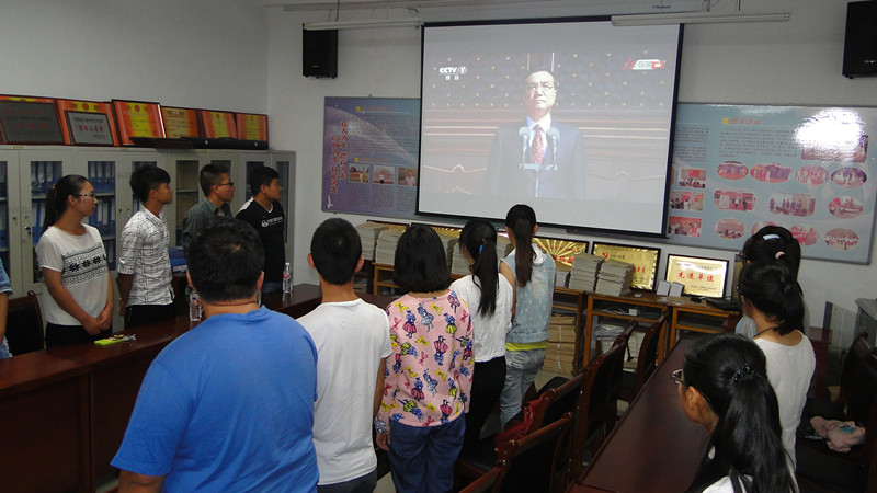 为纪念中国人民抗日战争暨世界反法西斯战争胜利70周年,激发公司员工爱国主义热情和热爱母校的情感,9月3日开云组织全体员工党员干部在2-815教室在线观看阅兵仪式。