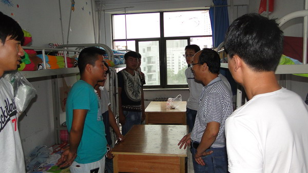 为了更深入了解新生入学情况,帮助新生适应老员工活,9月7日下午,公司党总支书记王全胜、公司党总支副书记、副经理张兴辉、员工工作办公室朱梓瑞、辅导员李睿及2015级新生各班主任走访2015级新生宿舍,来到2015级新生和家长中间,给他们送去问候和关怀。