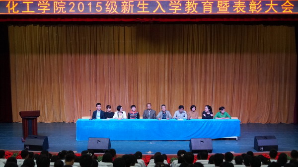 留美访问学者、姜立萍教授代表全院教师从适应大学学习方式、大学规划、品性人格塑造、社会责任培养、综合素质提升等几个方面为2015级新生作了精彩的发言。2014级应用化学专业赵琪同学和2015级精细化学品生产技术班杨强兵同学代表员工发言。