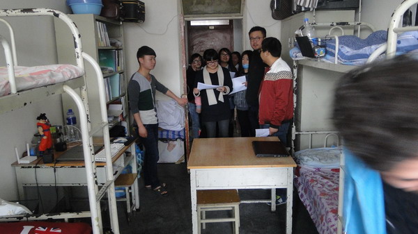 本次检查按照组织男生检查女生宿舍,组织女生检查男生宿舍的方式进行。女生检查男生宿舍让男生宿舍“炸开了锅”,传说中在男生寝室中随处可见的“臭袜子”和“脏衣服”并没有出现在视野之中,而是书法、绘画、化学方程式等一些颇有特色的别样装饰引得女生们连连拍照。在检查过程中朱梓瑞、李睿老师还强调了宿舍安全问题,告诫大家安全要始终放在第一位,严格遵守宿舍文明公约,注意防火、防盗,安全用电,保证自己及他人的人身安全,提醒同学们共同维护良好的宿舍卫生环境,养成良好的生活习惯。