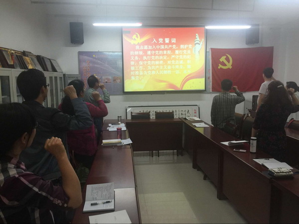 党总支书记王全胜在学习会上作了题为“树立党章意识,做合格党员”的专题党课,王书记从牢固树立党章的地位、党章的形成历史、党章的主要内容和学习党章的重要性等几个方面进行了重点说明。王书记强调到,通过重温入党誓词,共同学习党章,是对党性修养的一次深刻洗礼,也进一步增强了党的观念和党员意识。教工党员要充分发挥先锋模范作用,在师德师风建设、教书育人、教学科研和争当四有好老师方面带好头,做合格党员。