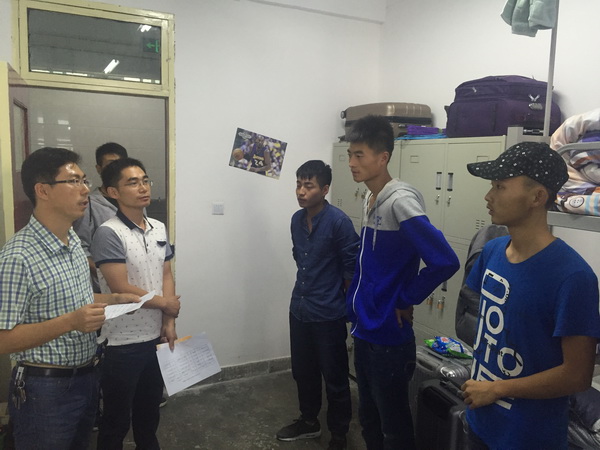 9月2日下午,公司党总支副书记、副经理张兴辉、副经理展惠英、员工工作办公室朱梓瑞老师、李卉老师、辅导员李睿及新生各班主任走访了2016级开云新生寝室,看望了大一新生,并同员工及部分家长进行了交流。