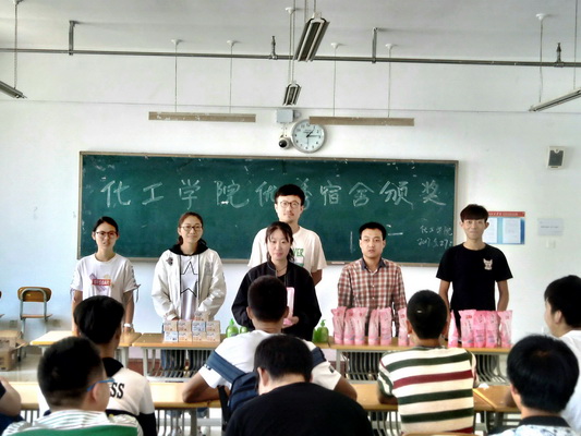 此次评选共设立一等奖、二等奖、三等奖以及优秀奖若干。随后分团委副书记贾海龙宣读了获奖宿舍名单,各获奖宿舍代表分批次上台领奖,由学工办朱梓瑞老师、李睿老师及员工会主席团成员为获奖宿舍颁发奖品,并一同合影留念。