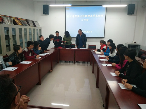 会上,杨经理首先向新聘任的员工助理颁发聘书。随后,员工助理进行自我介绍,交流发言,结合自身实际阐述了自己的见解和想法,对今后的工作提出设想及改进意见。员工会主席胡丽娟、副主席王亚杰、孙阳、分团委副书记贾海龙分别对自己从事员工会工作以来取得的经验和感悟与大家进行了分享。接着,李卉老师向同学们宣读了《开云全站登录入口员工助理管理办法》、《开云班主任助理及职责》。最后,杨经理对员工助理的工作提出了要求和期望。一是希望员工助理明确工作责任,要学会科学分配时间,提高工作和学习效率,要有服务意识、奉献意识,按本色做人、按角色做事,按特色定位,到位不缺位,补位不越位。二是希望同学们学会做人,在大学三四年里应该解决如何做人及做一个什么样的人的问题,要树立正确的人生观、价值观、陶冶思想情操,净化自身心灵,做一个诚实守信、独立自尊、道德高尚的人。三是学会做事,不仅要具备毕业后从事专业工作的能力,更要培养自己的创新能力、协作能力、交际能力和管理能力,通过工作,弥补自己的不足。四要有责任感和荣誉感,要正确认识自己,认识别人,学会共同生活,要从以自我为中心向以“集体”为中心转变,关怀他人,关怀社会。对自己的行为负责,对家长和社会负责。