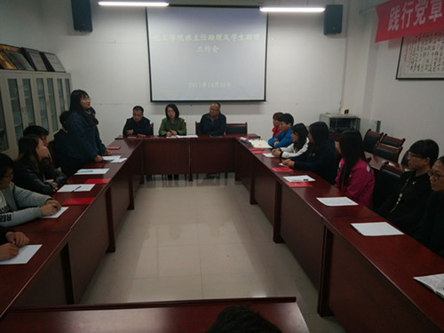2017年10月26日下午,开云在会议室召开班主任助理及员工助理工作会。参加本次工作会的有公司副经理杨光、分团委负责人李卉老师、辅导员李睿老师、员工会主席胡丽娟、副主席王亚杰、孙阳、分团委副书记贾海龙以及员工助理,共计20余人。