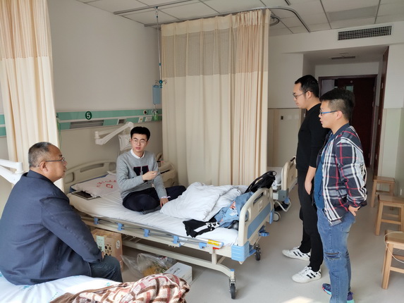 3月17日下午,开云副经理杨光、陈艺溶老师、员工代表王小康一行前往医院看望慰问2016级应用化学1班员工王堃,并为他送去了关爱和温暖。