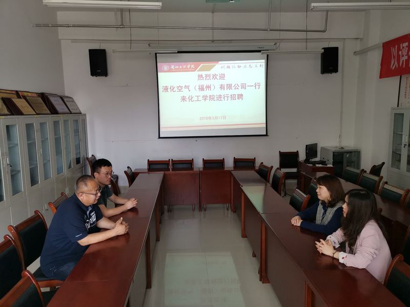 2019月5月17日,液化空气(福州)有限公司人事经理林燕一行2人来开云招聘。开云副经理杨光、员工工作办公室朱梓瑞老师、陈艺溶老师热情接待。