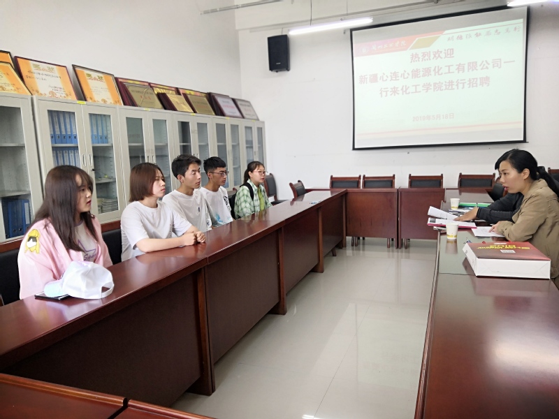 2019年5月18日,新疆心连心能源化工有限公司来开云招聘。企业人事部荆九艳经理对企业相关情况进行了宣讲,公司2020届约30余人参加了此次招聘会。