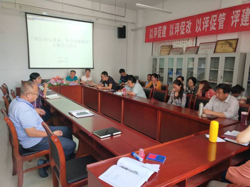 2019年6月13日下午,公司党总支举行“践行初心使命,争当先锋模范”主题党日活动。全体教工党员参加会议,会议由经理展惠英主持。