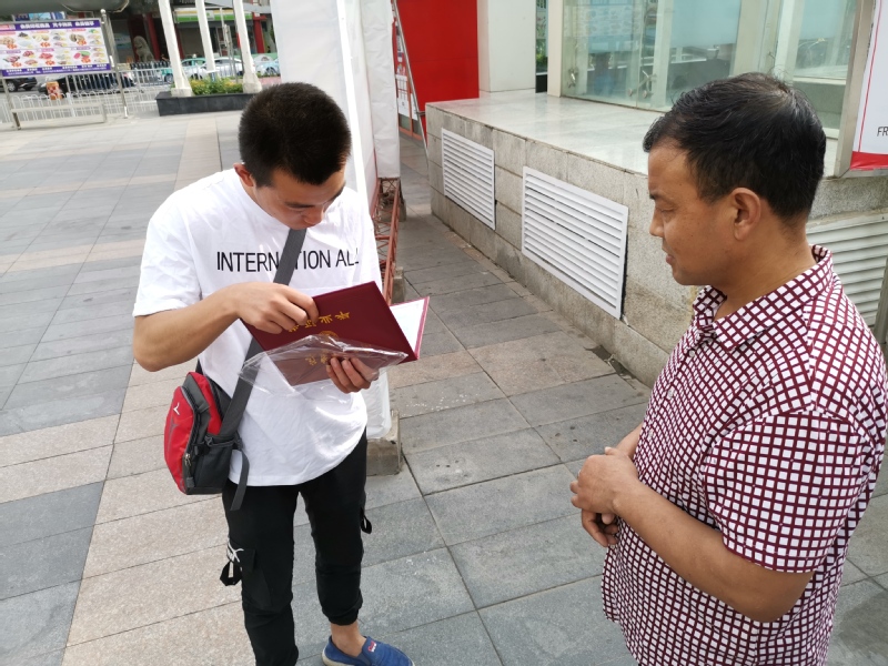 2019年7月16日上午,公司16级应用化工技术1班刘向龙对定西籍的杨先生表示感谢,感谢杨先生第一时间归还丢失的毕业证。