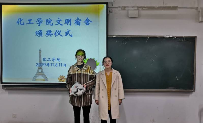 颁奖仪式伊始主持人宣读了获奖宿舍名单,李凯青老师为获奖宿舍代表颁发奖品。
