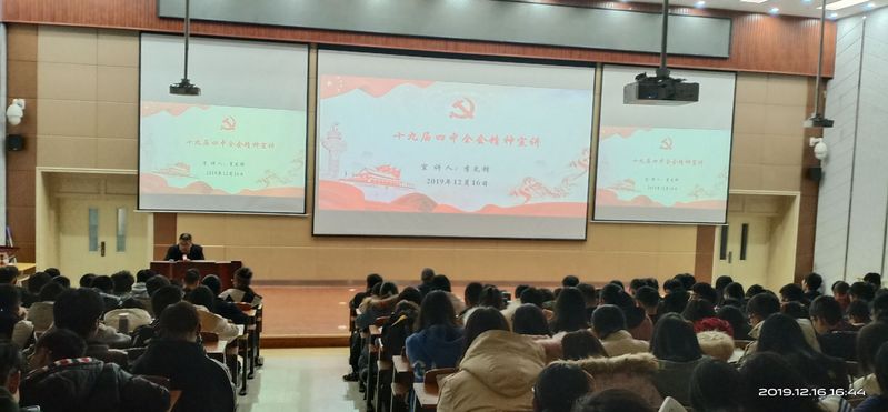 为全面准确学习宣传党的十九届四中全会精神,引导广大师生切实学习好领会好贯彻好十九届四中全会精神,推动兴起学习宣传贯彻十九届四中全会精神的热潮。12月16日下午,纪委书记李先锋为开云师生代表宣讲党的十九届四中全会精神。副经理杨光主持了此次宣讲会。