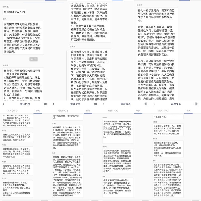 随后,同学们在学习强国上学习《中国已是走向成熟的负责任大国》这篇文章,在面对这场突如其来的疫情,国家主席习近平指出,疫情是魔鬼,我们不能让魔鬼藏匿。中国政府始终本着公开、透明、负责任的态度及时向国内外发布疫情信息,积极回应各方关切,加强与国际社会合作。面对这场疫情,我们国家从容应对,以全民动员式的“网格化”“地毯式”管理,编织出一张渗透到社区和农村的疫情防控之网,展现出中国强大的社会动员能力和治理能力,我们完全有信心、有能力打赢这场疫情防控狙击战。