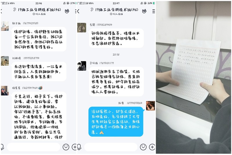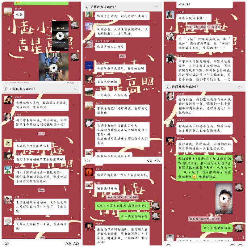 各班团支书通过文案及宣传视频,引导大家了解和深入探讨该主题。同学们在微信、QQ群聊进行主题讨论,表达了自己对该主题的理解,同学们以各自的切身体会,展开了激烈的讨论。