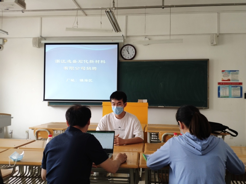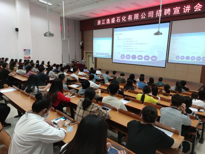 宣讲会上浙江逸盛石化有限公司刘主任和浙江逸盛新材料有限公司金主任详细介绍了企业的发展历程、人才培养、晋升通道、薪资待遇,同时现场解答了同学们的问题。