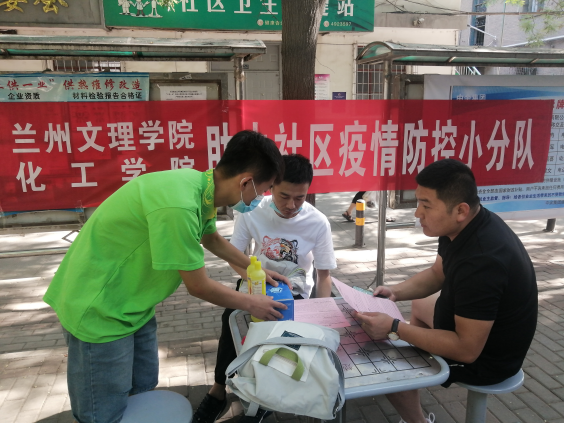 疫情防控小分队负责人李虎与社区负责人联系并了解社区情况。带领其他成员进行疫情防控宣讲,为居民展示在疫情期间的消毒、通风、体温检测、佩戴口罩、洗手、与人接触等的正确方式。小组成员针对老人、小孩等特殊群体入户进行手把手教学并赠送口罩、消毒凝胶、一次性手套、84消毒液等防疫用品。