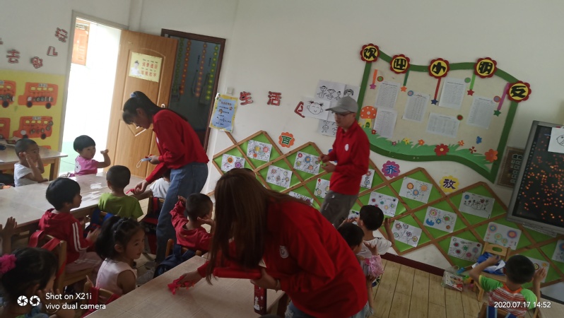 小分队成员为孩子们带来了少儿读物与小礼物,在互相熟悉玩耍的过程中,小分队成员了解到,该所幼儿园大多数的小朋友都在爷爷奶奶身边长大,他们更多表现为性格内向,害怕与外界接触和过度的自我保护。由于长期缺乏亲情的关爱,大部分儿童会形成一种自我保护意识,性格内敛,喜欢沉浸在个人内心世界,对新鲜事物抵触心态。随后,小分队成员个别儿童分别进行了私下家访,尝试走进孩子们的内心世界,告知父母的难处与无奈,希望他们能理解父母,快乐成长