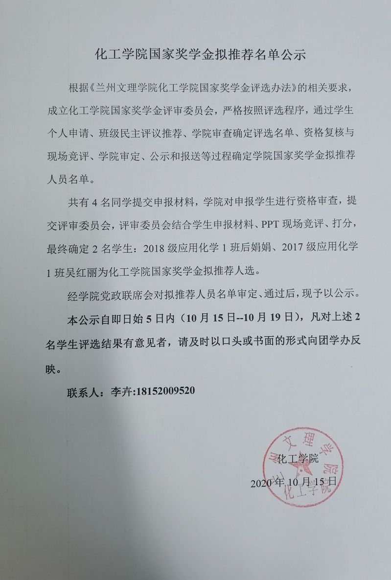开云国家奖学金拟推荐名单公示