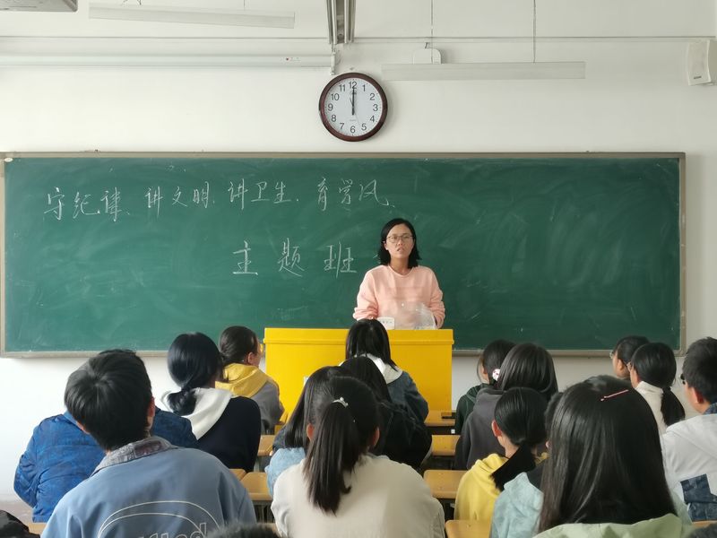 在主题班会上,各位班主任总结了课前十分钟宣讲活动的开展情况,希望同学们继续围绕身边的化学或者自己感兴趣的领域积极开展课前十分钟宣讲活动,提醒员工提前十五分钟,不带早餐零食进教室,充分利用好上课时间,认真听讲,学好专业知识;对公司督察队以及公司关于早课出勤情况、宿舍卫生的抽查情况进行通报,望同学们能严格遵守公司各项制度。班主任向同学们强调,要养成文明的言行,自觉抵制不文明行为,比如上下楼梯、乘坐电梯、食堂就餐时主动排队,见到教师主动问候,严禁在公共场合大声喧哗,垃圾入箱,养成良好的卫生习惯;在班主任们的带领下,同学们学习了宿舍管理相关制度,呼吁大家共同创造优美的宿舍环境。