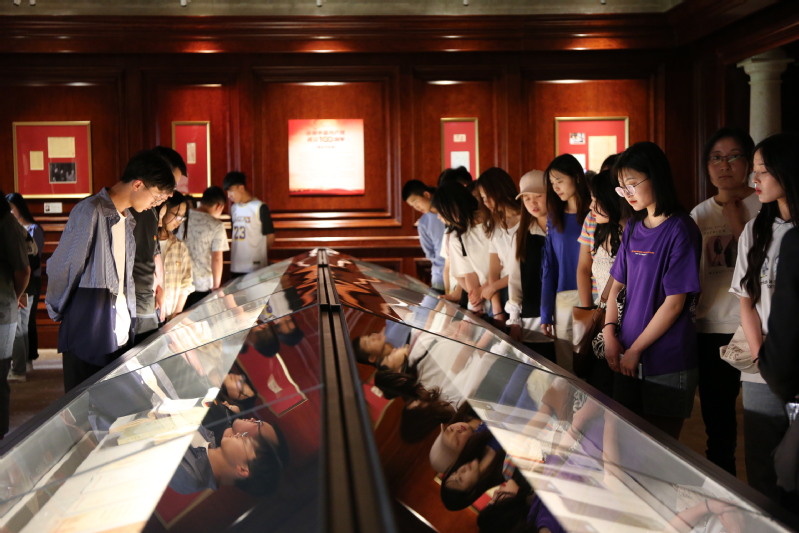展览以中国共产党100年奋斗历程为主线,收集了大量重要历史人物的珍贵书信、手稿以及新中国成立初期政治、军事、外交、文化、科技等领域重要人物手迹,以大量珍贵的书信、名人手稿,生动刻画和传承了中国共产党人的初心和使命,跟随着讲解员,同学们不断驻足于一张张珍贵的文件前仔细观看,凝眸动人心魄的历史瞬间,重温波澜壮阔的革命岁月,感悟百年不渝的初心使命。