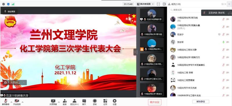 贺志军致闭幕词,她首先对上届员工会主席团的工作给予肯定,祝福他们学有所获,实现人生理想。并对新一届主席团工作充满期望,希望能传承上届主席团的良好作风,带头刻苦学习、苦干实干、严格自律,联系同学。以全心全意服务同学为宗旨,不断创新工作方式,在促进公司优良学风建设,开展自我教育,引导同学、服务同学、维护同学权益等方面作出更好的成绩。她对当选的校学代会代表提出三点要求:一是要珍惜代表资格,为同学们的健康发展、成长成才建言献策。二是要以良好的形象展示化工学子的精神风貌,树立化工学子昂扬向上、开拓进取的良好形象。三是要认真履行代表职责,为公司团学工作更好的发展贡献智慧,积极建言献策。希望全体同学能以校为家,牢记“明德强能,励志笃行”的校训,不负重托,不负韶华,做最好的自己。