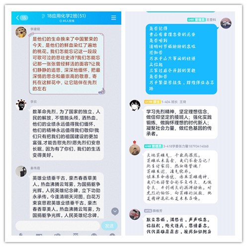 4月5日,公司分团委组织同学们登录共青团中央官网观看清明节“缅怀英烈——清明直播活动”。直播过程中大家纷纷通过云端敬献“鲜花”、书写留言等方式纪念人民英雄。并在活动结束之时,各班同学在班级群互享心得,留言表达哀思,沉痛悼念逝去的烈士,致敬这群可爱的民族英雄;表达对先烈的感恩和敬仰。