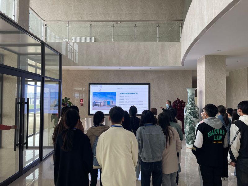 甘肃华实生物科技有限公司对来访师生表示热烈欢迎,公司行政人力总监付洪春详细介绍了企业的发展历程、整体概况、企业文化、未来发展趋势、员工待遇及用人要求,并组织大家参观了中控室、实验室及公司整个环境。