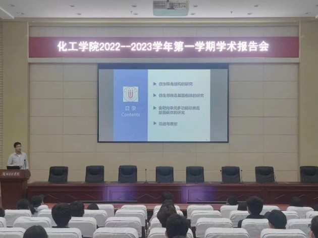 李珍副教授做了题为《宽温域铜基自润滑复合材料的设计、制备及摩擦学行为的研究》,详细介绍了金属材料、无机非金属材料和有机高分子材料的优势及单一材料本身所没有的新性能。李辉博士的题为《煤化工产业发展现状与煤制芳烃反应研究》,重点介绍了我国煤化工产业发展所面临的挑战及煤基甲醇制芳烃技术催化剂的开发。刘晋宇博士的题为《仿生转角的构筑及多功能非病毒基因载体的研究》,介绍了仿生非病毒基因载体的研究及含靶向单元多功能非病毒基因载体的研究,并对其机理进行了解释说明。