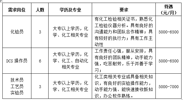 盐城联合伟业化工有限公司招聘简章