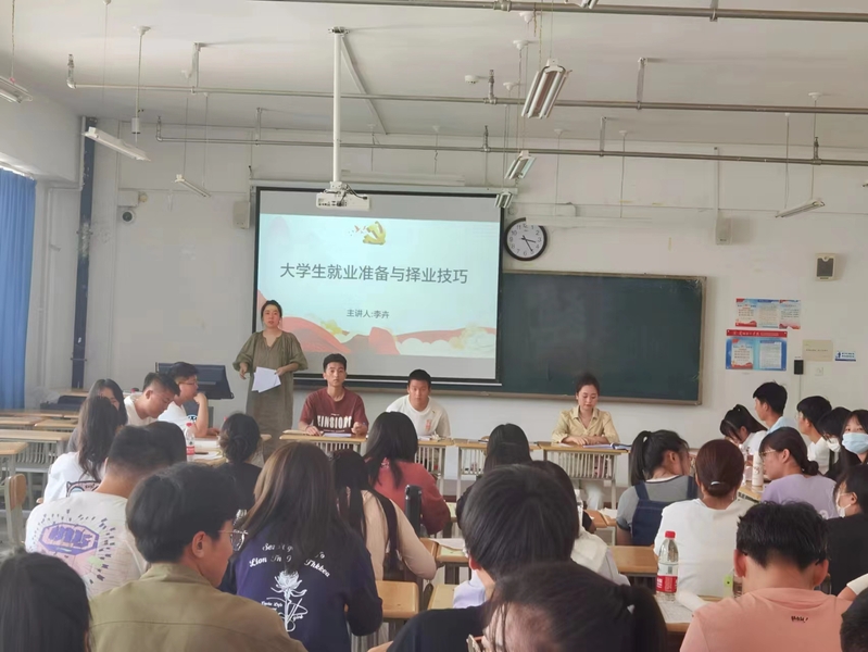 讲座结合今年毕业生情况和专业发展对当前就业形势进行分析,从求职途径、求职心态、就业流程三个方面讲述求职就业过程中应当注重的问题。通过就业短视频,为在场同学们分享面试的技巧讲解制作简历的注意事项,详细讲解了简历结构和内容,并展示了优秀简历模板供同学们参考。