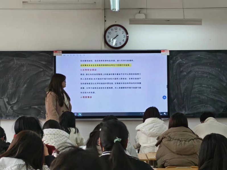 各班集体学习了实验室注意事项、各类化学试剂安全使用规范及实验室守则等内容。此外,通过了解近几年发生的各类实验室事故案例,希望同学们对实验室安全予以足够的重视,在完成实验的同时一定要维护好自身安全。