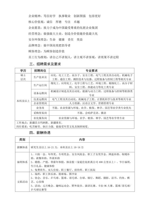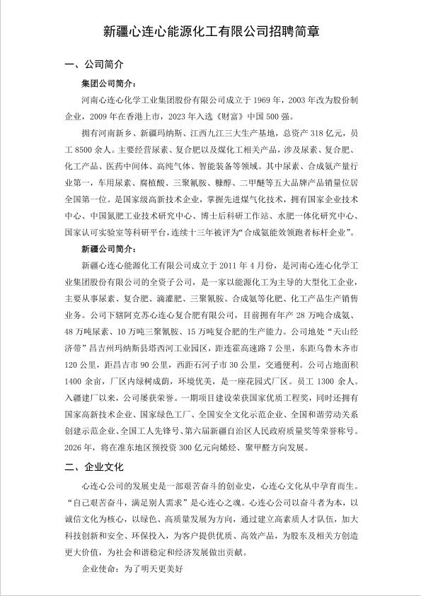新疆心连心能源化工有限公司招聘简章