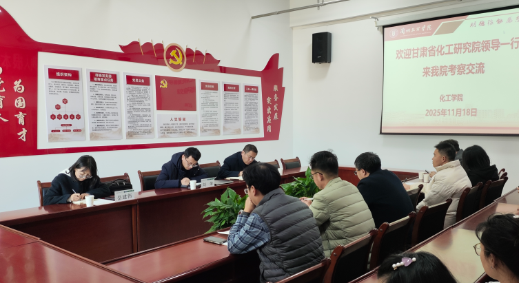 为深化校企协同,推动产学研深度融合,11月18日,甘肃省化工研究院有限责任公司副总经理刘荣一行莅临公司,围绕化工、材料领域科研创新与成果转化开展专题座谈。公司相关负责人及专业骨干教师代表参会。