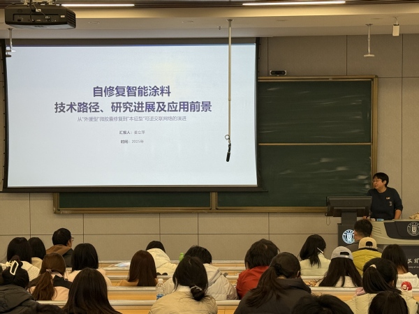 报告会上,姜立萍以《自修复智能涂料:技术路径、研究进展及应用前景》为题,系统梳理了外援型自修复与本征型自修复两大主流技术路径的原理特性,结合当前研究进展剖析技术瓶颈,并展望了其在高端装备防护、基础设施维护等领域的应用前景。李姗姗以《自修复智能涂料:技术路径、研究进展及应用前景》为题,介绍了在超级电容器材料中,用羟基修饰的有机分子与石墨烯结合,能显著提升储能性能。用这种材料组装的超级电容器,能量密度高、效率达99%,且耐用性强,串联后甚至能点亮上百个LED灯,为绿色能源应用提供了新思路。